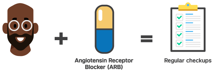 Periodic renal function monitoring is recommended for patients taking ARBs.8-15 Drugs that inhibit the renin-angiotensin system, such as ARBs, can cause changes in renal function including acute renal failure. Patients whose renal function may depend on the activity of the renin-angiotensin system include those with renal artery stenosis, CKD, severe HF, or volume depletion. They may be at higher risk of developing oliguria, progressive azotemia, or acute renal failure when taking an ARB. Doctors should consider withholding or discontinuing treatment in patients who develop a clinically significant decrease in renal function on an ARB.