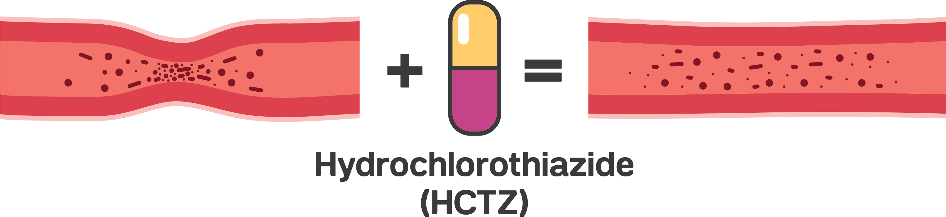 The exact mechanism of action for thiazide diuretics, including hydrochlorothiazide (HCTZ), is not completely understood. There appear to be several mechanisms, which include an acute diuretic effect as well as a chronic decrease in peripheral vascular resistance.1-5