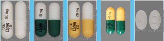 Examples of Carvedilol pills:
